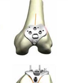 Η οπίσθια επιφάνεια της επιγονατίδας και η πρόσθια του μηρού αντικαθίστανται ανάλογα του μεγέθους και της ανατομίας του γόνατός σας με το κατάλληλο εμφύτευμα. (εικόνα 9 ) Ειδικά όσον αφορά τις οστεοτομίες στην πρόσθια επιφάνεια του μηρού, η τεχνική και οι χρησιμοποιούμενοι οδηγοί έχουν επίσης εξελιχθεί σοβαρά. (εικόνα 10 εικόνα 11 και εικόνα 12)
