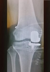 Άλλη μια σημαντική δυνατότητα που έχουμε είναι στην περίπτωση νέων ατόμων με αρθρίτιδα περιορισμένη μεν στο έσω διαμέρισμα, αλλά με ταυτόχρονη ρήξη προσθίου χιαστου συνδέσμου. Πρόκειται για ασθενείς νέους, συχνά κάτω των 50 ετών. Η ρήξη του χιαστού η ίδια εμπλέκεται στην πορεία της αρθρίτιδας. Εδώ με βάση τα κριτήρια που εφαρμόζουμε, η μερική αρθροπλαστική είναι αδύνατη. Ωστόσο, θα θέλαμε να αποφύγουμε αν γίνεται την ολική αντικατάσταση. Στην κλινική μας έχουμε εφαρμόσει την ταυτόχρονη μερική αρθροπλαστική με συνδεσμοπλαστική του προσθίου χιαστού με αυτομόσχευμα από τον ίδιο τον ασθενή. (εικόνα 15) Μάλιστα σε κατ’ιδίαν συζήτηση με τους διεθνείς εκπαιδευτές (από την ίδια την ομάδα σχεδιασμού των προθέσεων) στη μέθοδο της Oxford microplasty αυτή ακριβώς η λύση προκρίνεται, με την προϋπόθεση της χειρουργικής εξοικείωσης και με τις δύο μεθόδους. Αποτελεί μια τεχνικά δύσκολη επιλογή, η οποία ωστόσο προσφέρει ένα άριστο γόνατο για πολλά χρόνια. (εικόνα 16)