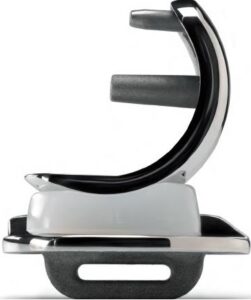 Η σκέψη να «αλλάξουμε» μόνο το φθαρμένο κομμάτι όχι. Αντίθετα, έχει ιστορία δεκαετιών. Τι αλλάζει λοιπόν; η εξέλιξη στην Ορθοπαιδική κάνει εφικτό το σενάριο μιας επέμβασης με γρήγορη αποκατάσταση, πραγματικά fast track, και άριστο μακροχρόνιο λειτουργικό αποτέλεσμα. Τρία είναι τα κρίσιμα πεδία εξέλιξης που επέτρεψαν τη θεαματική βελτίωση των αποτελεσμάτων της μονοδιαμερισματικής αρθροπλαστικής του γόνατος:  1. η βελτίωση του σχεδιασμού και της ποιότητας των υλικών(εικόνα 7  (Αναφέρουμε μάλιστα ότι εδώ και λίγα χρόνια οι προθέσεις μπορούν να τοποθετηθούν χωρίς οστικό τσιμέντο και από τις δύο πλευρές με πολύ καλό προβλεπόμενη μακροχρόνιο αποτέλεσμα)  2. ο καθορισμός των ορθών κριτηρίων επιλογής του κατάλληλου υποψηφίου για την επέμβαση και 3. η χρήση εξατομικευμένων τεχνικών ελάχιστης παρεμβατικότητας που μειώνουν σημαντικά το χειρουργικό τραύμα (MIS). Ιδιαίτερα, η εισαγωγή από τους Repicci και Eberle των minimal invasive τεχνικών προσπέλασης και εμφύτευσης έδωσε, ίσως, την πιο σημαντική ώθηση σε αυτήν τη μέθοδο αρθροπλαστικής. Η εξέλιξη της πλέον καταξιωμένης μονοδιαμερισματικής αρθροπλαστικής Oxford, από τη Zimmer – Biomet στην τεχνική Oxford microplasty σήμερα, αντανακλά την τελειοποίηση του σχεδιασμού των υλικών και τη χρήση μιας σειράς μεγάλης ακρίβειας ατραυματικών εργαλείων. Έτσι είναι εφικτή η αξιόπιστη τοποθέτηση των υλικών χωρίς πρακτικά καθόλου τραύμα στα μαλακά μόρια γύρω από το οστό.