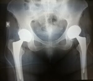 Ο σύγχρονος τρόπος ζωής, με τις πολλές απαιτήσεις, φέρνει όλο και πιο συχνά το χειρουργό αντιμέτωπο με αυτό το ερώτημα, από τους ίδιους τους ασθενείς του. Ιδιαίτερα οι πιο νέοι πάσχοντες, με αυξημένες επαγγελματικές ή οικογενειακές υποχρεώσεις ενδιαφέρονται για τη δυνατότητα να λύσουν το πρόβλημα και των δύο χαλασμένων αρθρώσεων σε «μια επέμβαση – μία αναισθησία» Ο συνδυασμός της ελαχιστοποίησης του τραύματος (με όλα τα πλεονεκτήματα που προαναφέρθηκαν) και της ύπτιας θέσης του ασθενούς στο χειρουργείο, στο τραπέζι έλξης, διευκολύνει την επιλογή αυτή. Σαφώς και όλοι οι ασθενείς δε μπορούν να υποστηρίξουν μια ταυτόχρονη αρθροπλαστική AMIS – νέα άτομα όμως με πολλές εφεδρείες στα οργανικά τους συστήματα και πολύ καλή γενική υγεία μπορούν να επιλέξουν ταυτόχρονη αρθροπλαστική ισχίων, κάτι άλλωστε που γίνεται σήμερα σε κέντρα με γνώση της μεθόδου παγκοσμίως και πραγματοποιείται και από την Κλινική μας σε επιλεγμένα περιστατικά. (εικόνα 14 )